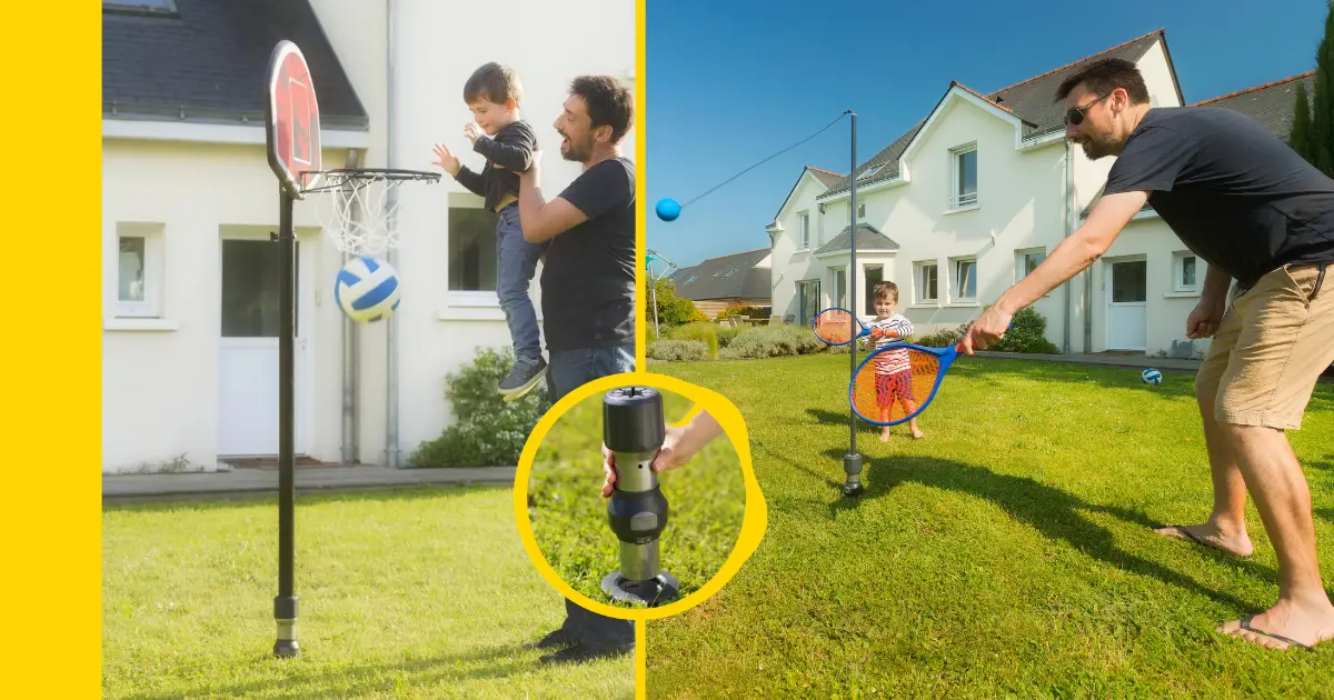 Instale fácilmente una canasta de baloncesto desmontable o un kit de speed-ball gracias al sistema de fijación al suelo GARD&ROCK. Estable y rápida de colocar, permite jugar al aire libre sin limitaciones y retirar el equipo una vez finalizada la actividad. Una solución ideal para transformar su jardín en un espacio deportivo a demanda.