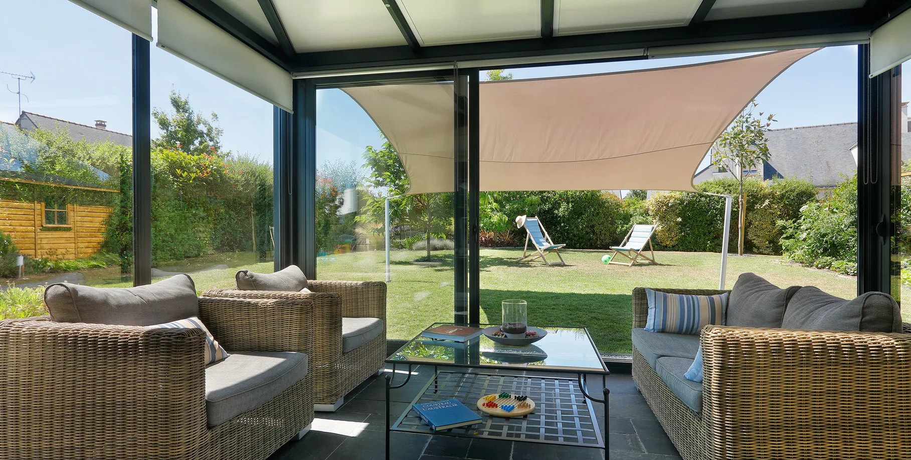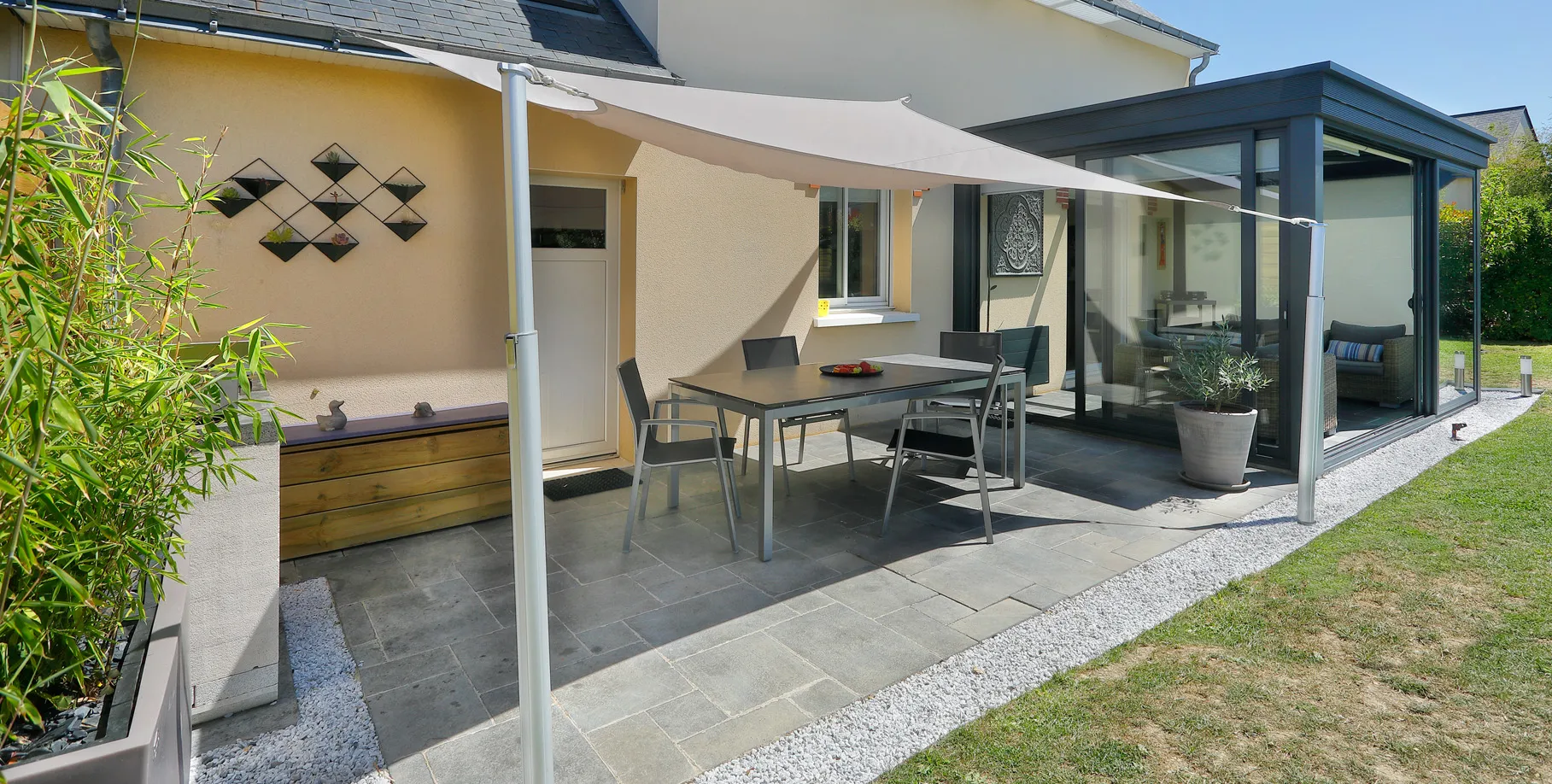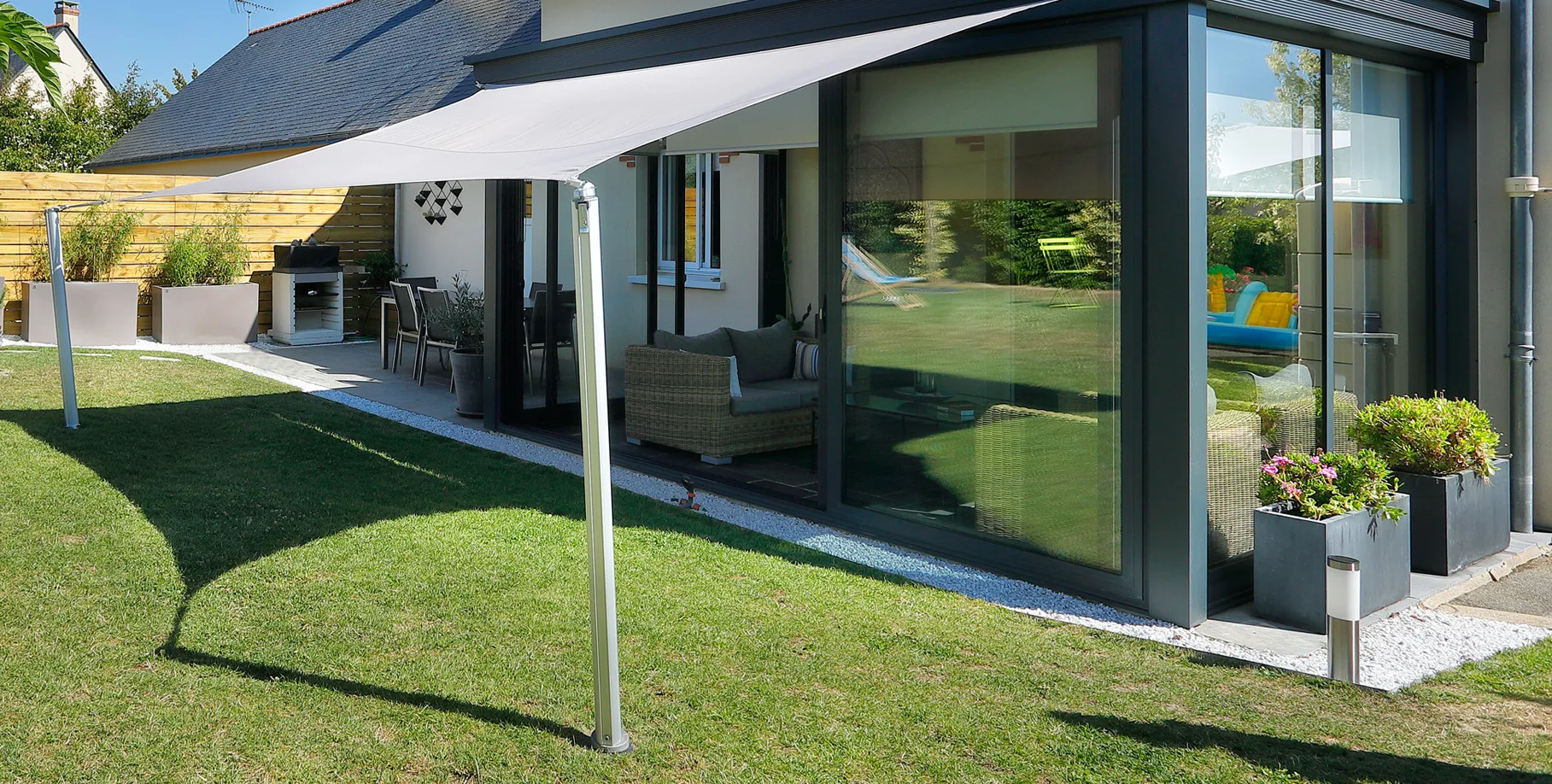 Cree su propia pérgola a medida, elegantemente diseñada y desmontable con una altura que se puede adaptar a la orientación del sol
