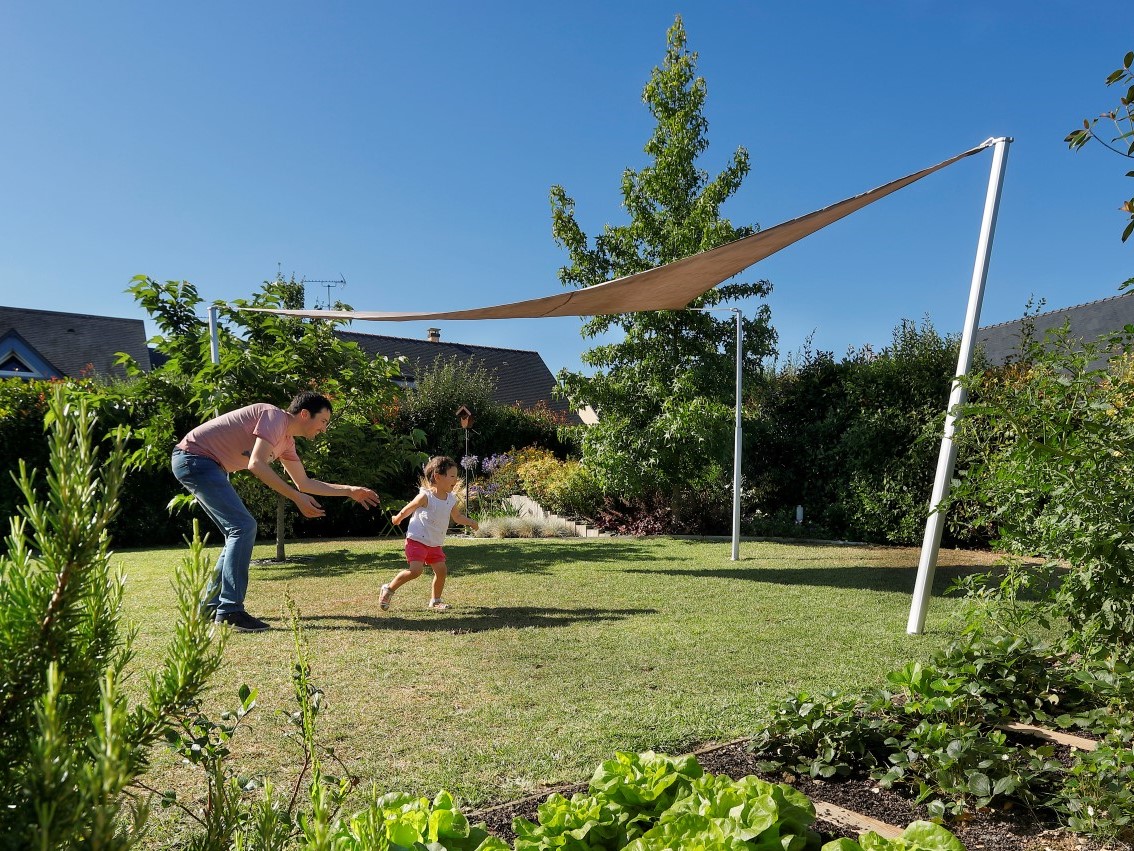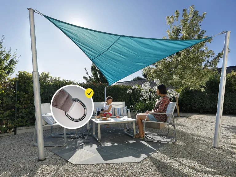 Las velas de sombra pueden fijarse directamente a un soporte existente (fachada de la casa, veranda, etc.) o a mástiles telescópicos Gard&Rock para aumentar el número de ubicaciones posibles. De este modo podrá crear la máxima sombra para disfrutar al máximo de su jardín.