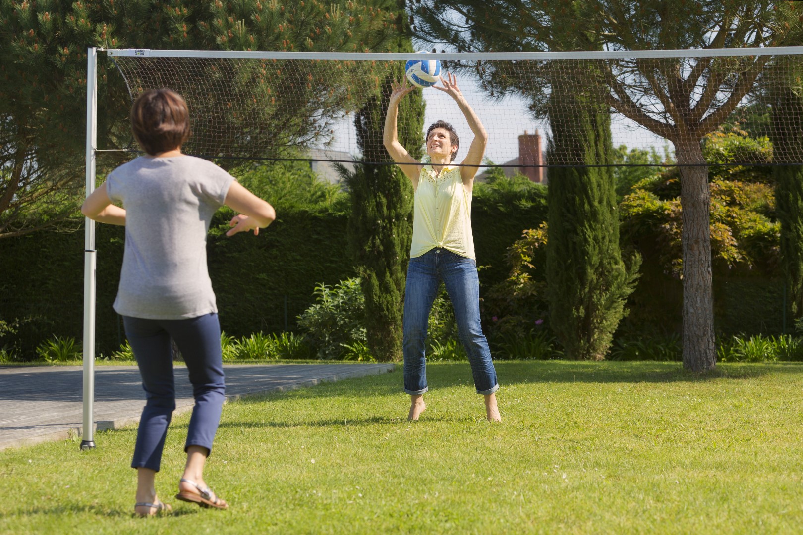 En casa, en lo de amigos o de vacaciones, puede transformar rápidamente su espacio en una verdadera cancha de tenis, bádminton, pickleball o vóleibol con un sencillo enganche al piso.