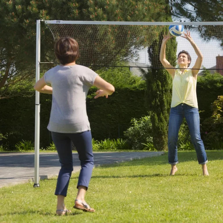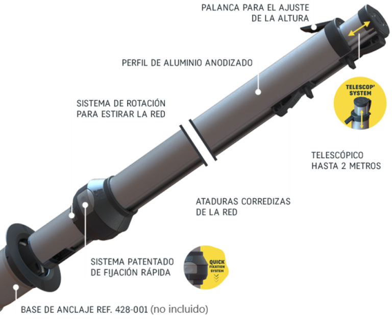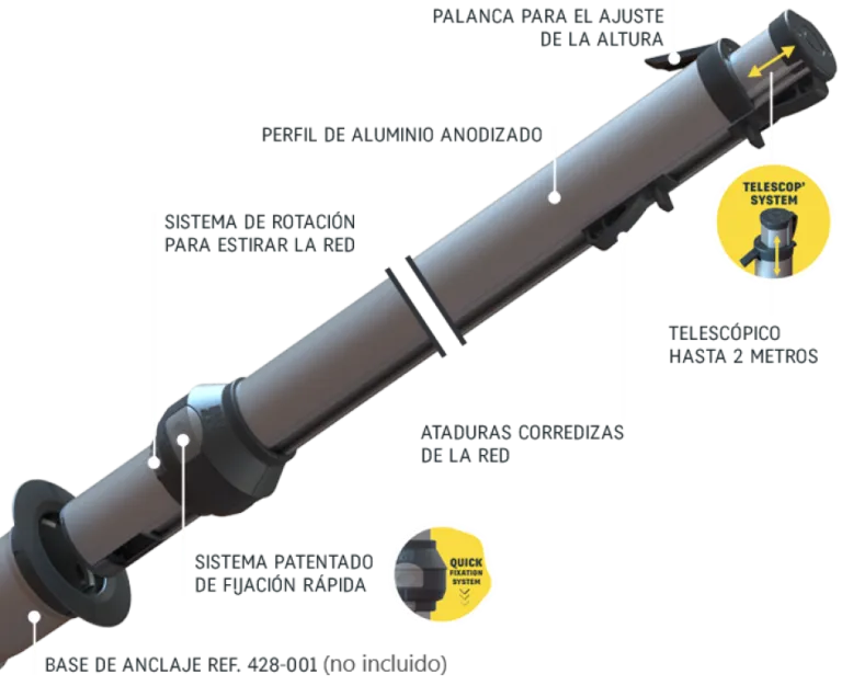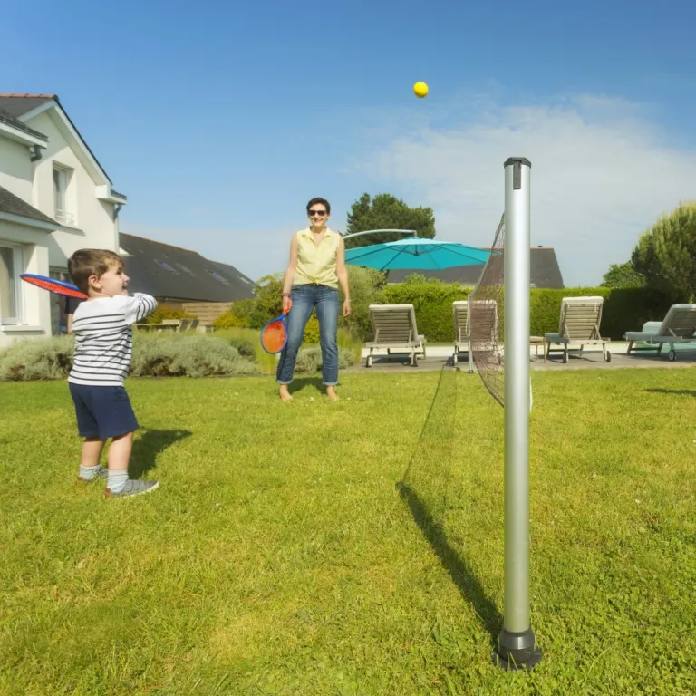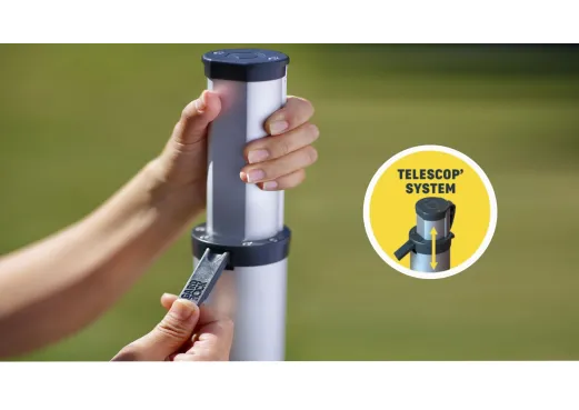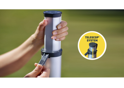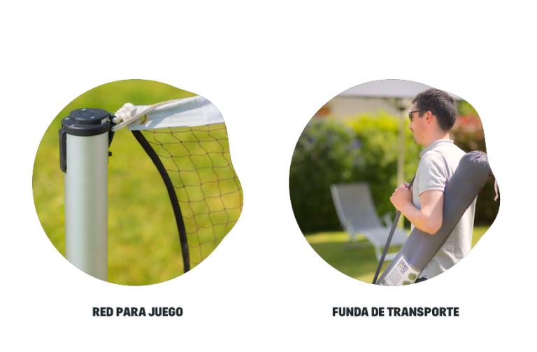 Provisto de una función telescópica, alterne fácilmente cada juego y adapte la altura de la red para los más grandes y los más pequeños. En el camping, parque o jardín, traslade fácilmente su kit para el deporte de su elección.
