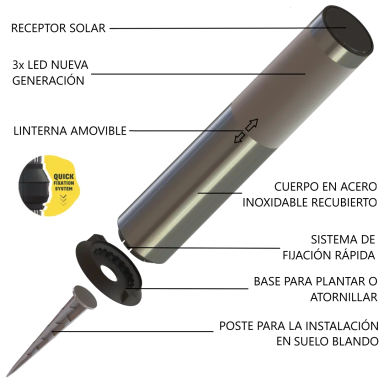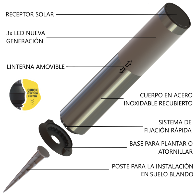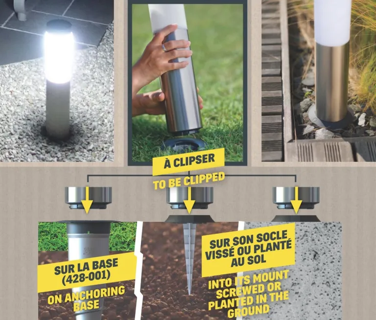 Como no es necesaria ninguna conexión ni obra, podrá instalar fácilmente sus bolardos solares donde desee para disfrutar al máximo de su espacio. Podrá incluso utilizarla para desplazarse y durante las comidas gracias a la función de linterna extraíble.