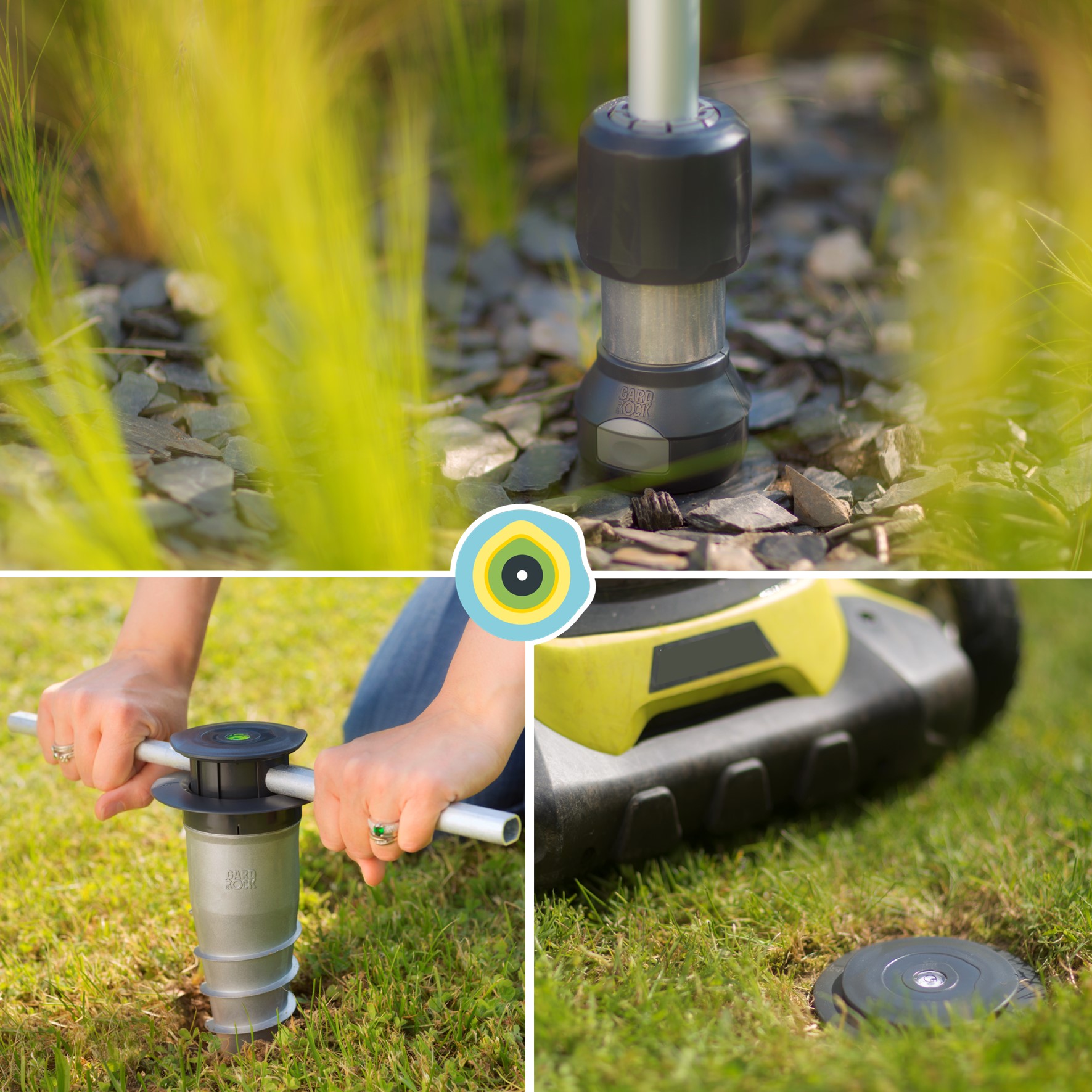 El pie de fijación Gard&Rock permite un anclaje al piso sólido y extraíble de su equipamiento al aire libre (sombrillas, gazebos, banderas, pajareras, equipamientos deportivos, ...). Simplemente enganchando en la base de anclaje (se vende por separado), ¡podrá organizar o liberar espacio en un instante para disfrutar su jardín plenamente!