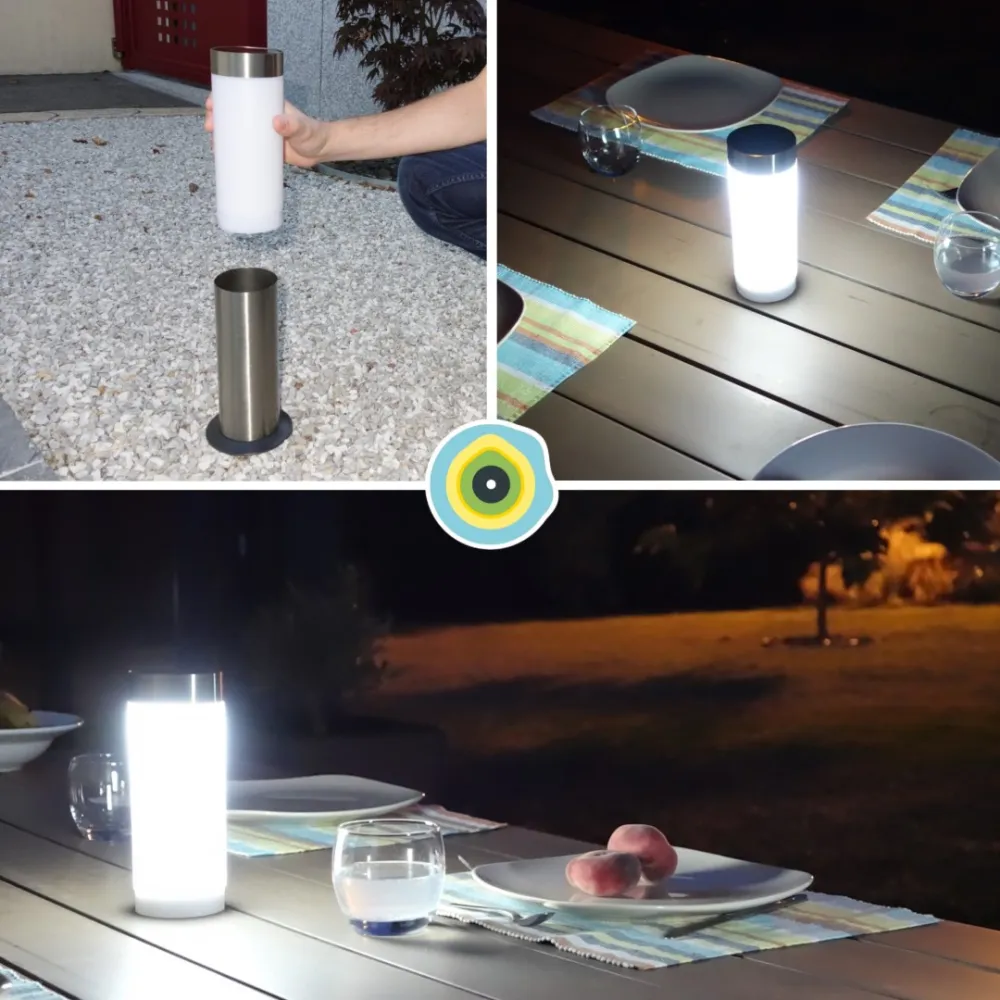 Como no es necesaria ninguna conexión ni obra, podrá instalar fácilmente sus bolardos solares donde desee para disfrutar al máximo de su espacio. Podrá incluso utilizarla para desplazarse y durante las comidas gracias a la función de linterna extraíble.